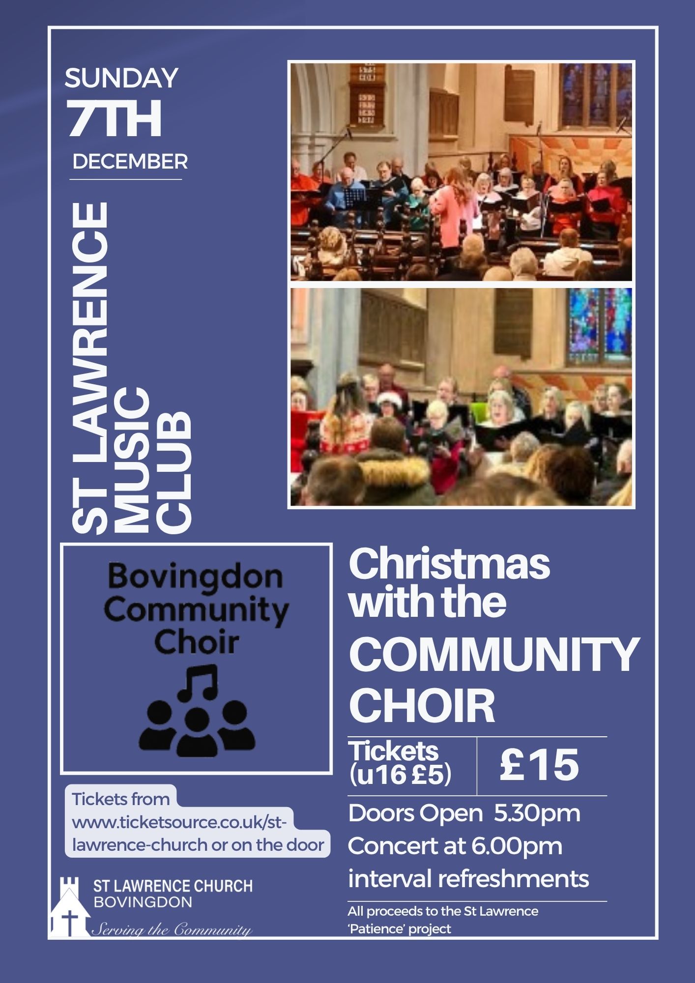 We have launched the St Lawrence Music Club to raise money and awareness of our ‘Patience’ project fundraising campaign and to highlight the potential of our beautiful building to host concerts and events.